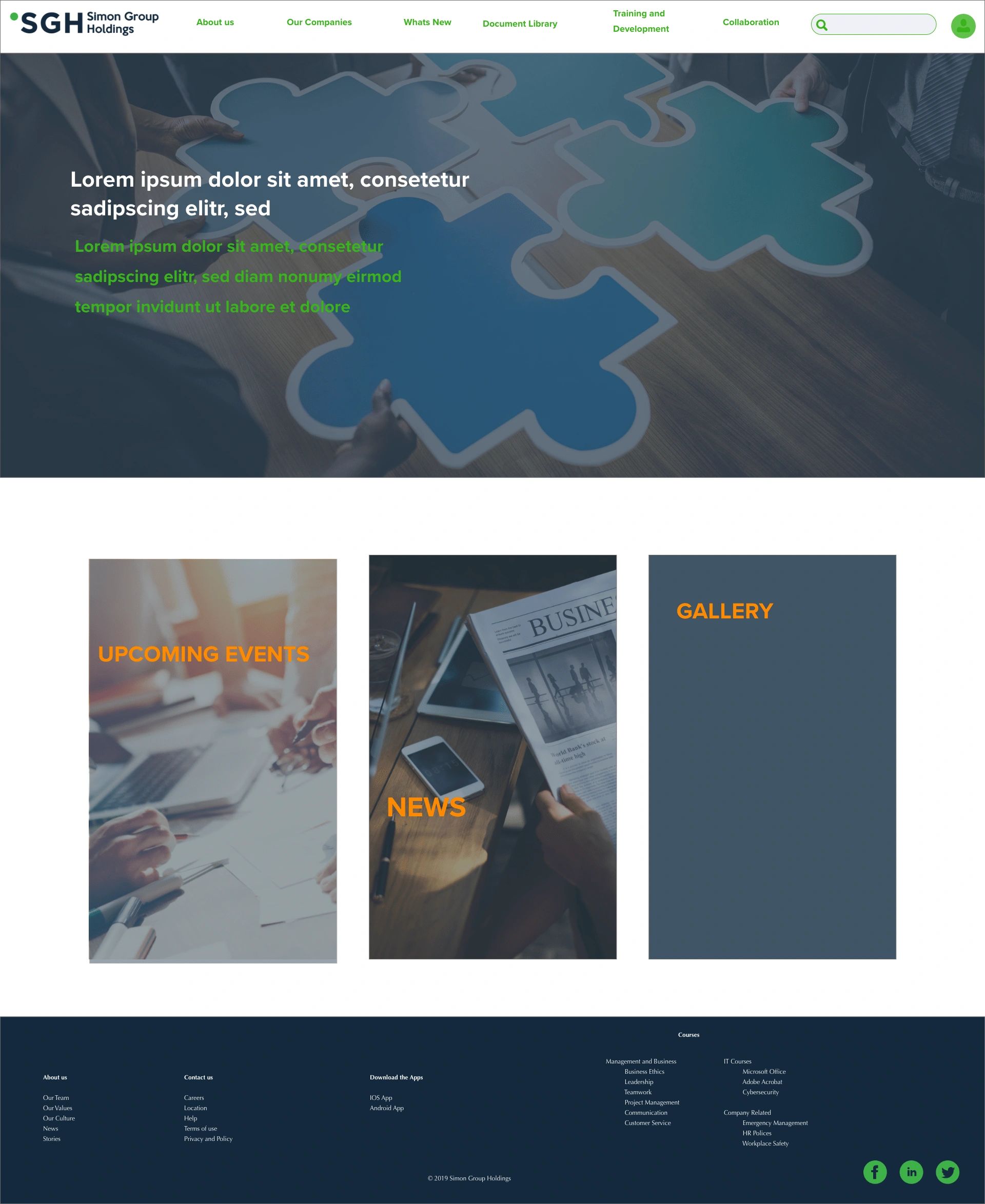 The purpose of the project is to create an Intranet for Simon Group Holdings Company management team and employees. The intranet goal is to create a One-site to connect management, employees and departments with each other, anywhere, anytime and via several devices.